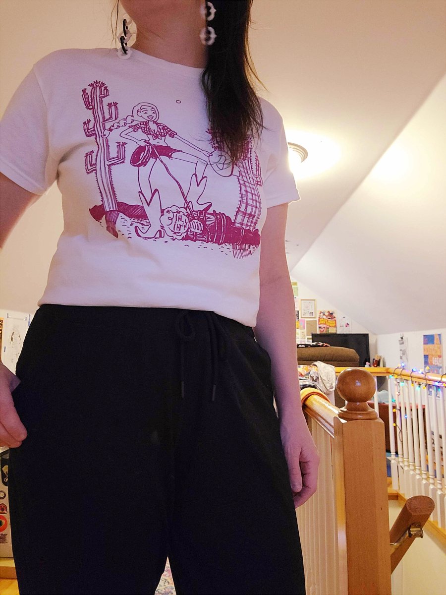 Screenprinted design on white Gildan Heavy Cotton T-Shirt; sizing information can be found here. Final product may vary slightly from mockup image.